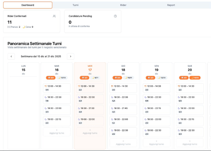 Applicazione creata su misura per gestire i rider di un ristorante delivery.